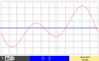 Puede verse el gráfico de la Ecuación del Tiempo como función del valor del sol verdadero menos el sol medio. El dibujo central inferior muestra la posición relativa de los dos soles. Los valores del gráfico pueden exportarse a un fichero Excel. |