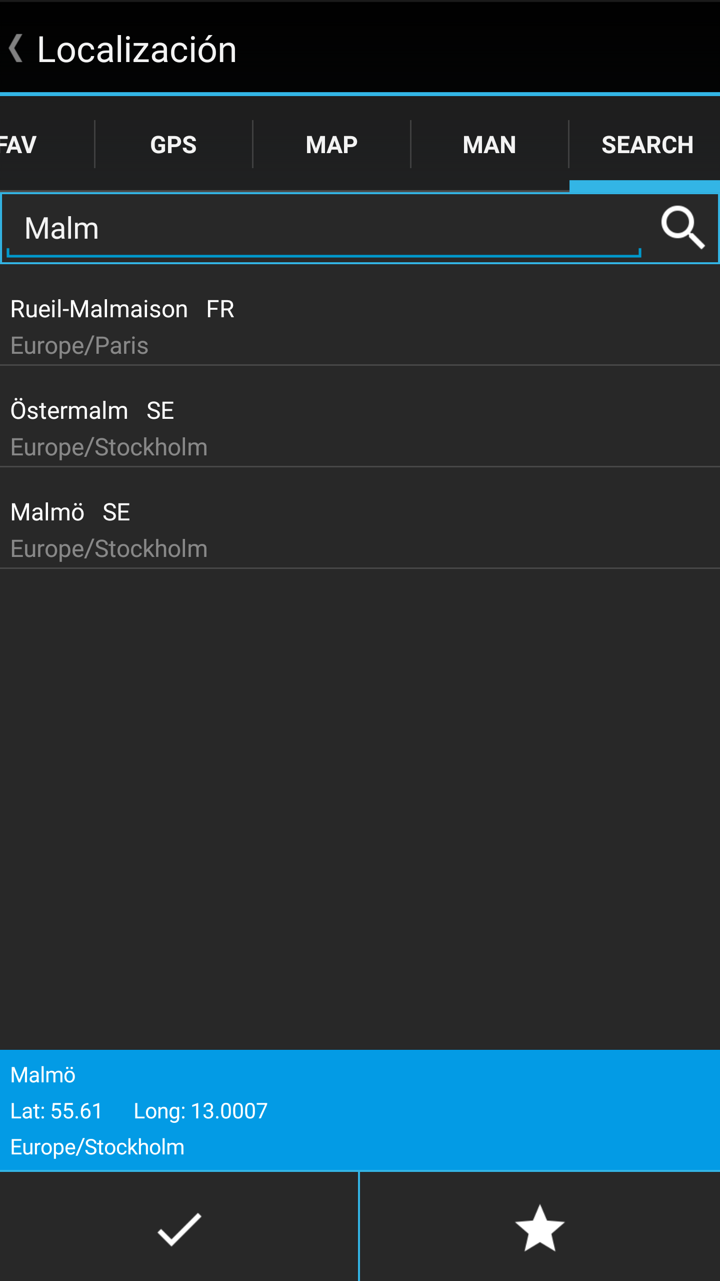 La hora solar depende de las coordenadas del emplazamiento. Estas se pueden obtener con el GPS, introduciendolas manualmente, desde el mapa o desde una base de datos con más de 15.000 ciudades de todo el mundo